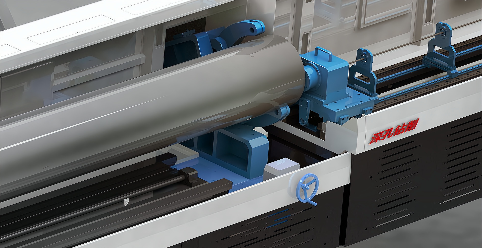 裝夾方式:液壓卡盤夾持工件左側(cè)外圓,液壓中心架支撐工件右側(cè)外圓,配置腳踩開關(guān),工件裝夾便捷可靠,自定心精度高。