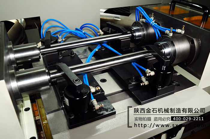 導(dǎo)向套:左側(cè)導(dǎo)向套軸向固定; 右側(cè)導(dǎo)向套氣動(dòng)驅(qū)動(dòng)伸縮,推動(dòng)工件貼緊兩導(dǎo)向套