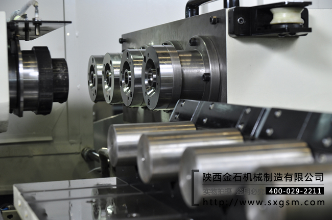 工件裝夾:依靠尾頂及導向套上的錐盤,以工件兩端的倒角準確定位工件;尾頂液壓伸縮夾緊工件。" />