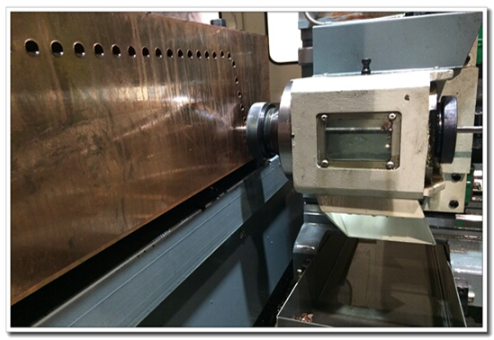模具行業(yè),因其工件上孔的分布不同,孔徑大小不一,我公司專(zhuān)門(mén)對(duì)其設(shè)計(jì)制造了一臺(tái)數(shù)控深孔鉆床。伺服控制的位置移動(dòng)、快速裝卸的刀具設(shè)計(jì),都彰顯著我司一切為了客戶(hù)的理念。 2008年11月15日,我司第一臺(tái)專(zhuān)門(mén)為模具設(shè)計(jì)制造的深孔鉆機(jī)床組裝試車(chē)成功。(下圖機(jī)床照片) 該機(jī)床具備鉆桿旋轉(zhuǎn),工件固定,加工異形件的不同位置的分度孔的能力。 機(jī)床的主要參數(shù): 1.主軸軸數(shù): 1軸 2.鉆孔直徑范圍: Ф3-Ф35mm 3.最大鉆孔深度: 1500mm 4.工作臺(tái): 1500*1000mm 機(jī)床加工區(qū)展示: 加工位置孔(紫